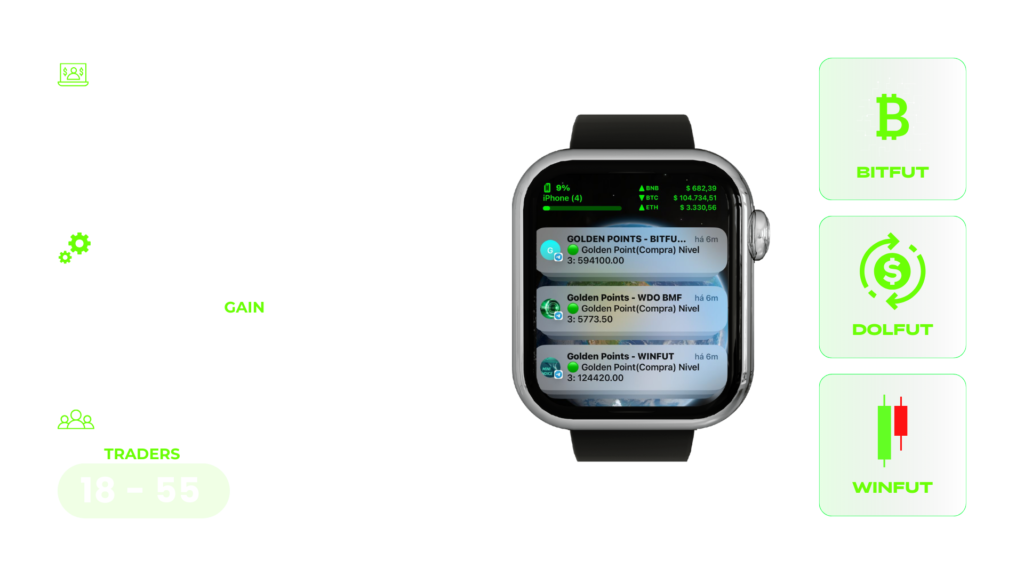 Com os Golden Points, você inicia o dia com um planejamento sólido, sabendo onde estão as principais regiões de interesse no mercado. Isso reduz operações impulsivas e aumenta suas chances de entrar nas melhores oportunidades.